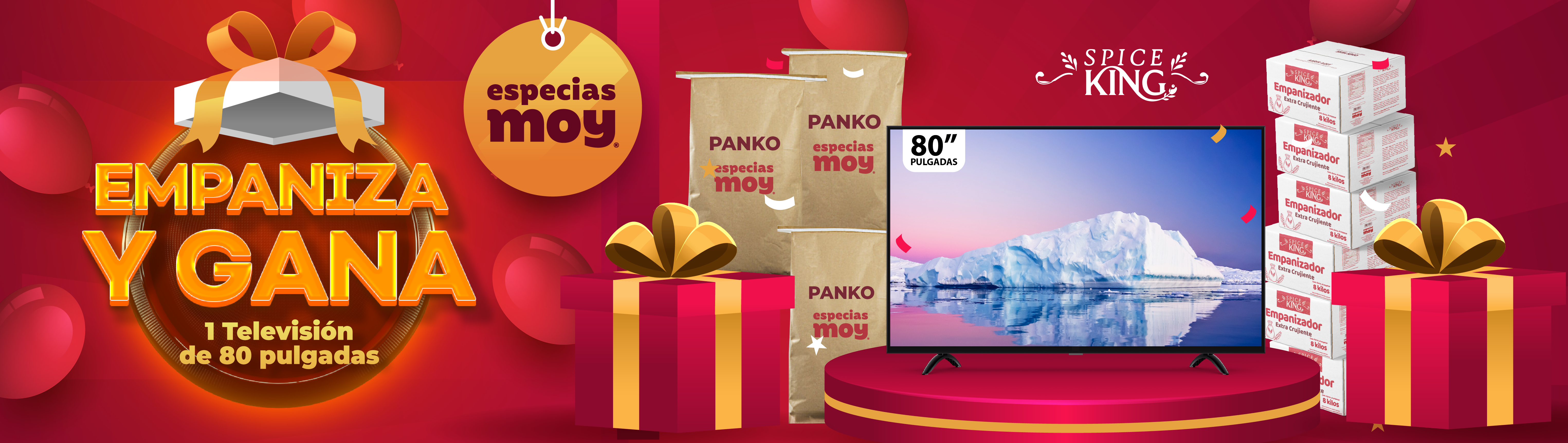 Por cada compra mínima de 1 kilo de Empanizador marca Spice King o Panko marca Especias Moy el cliente podrá participar en el sorteo de la pantalla.