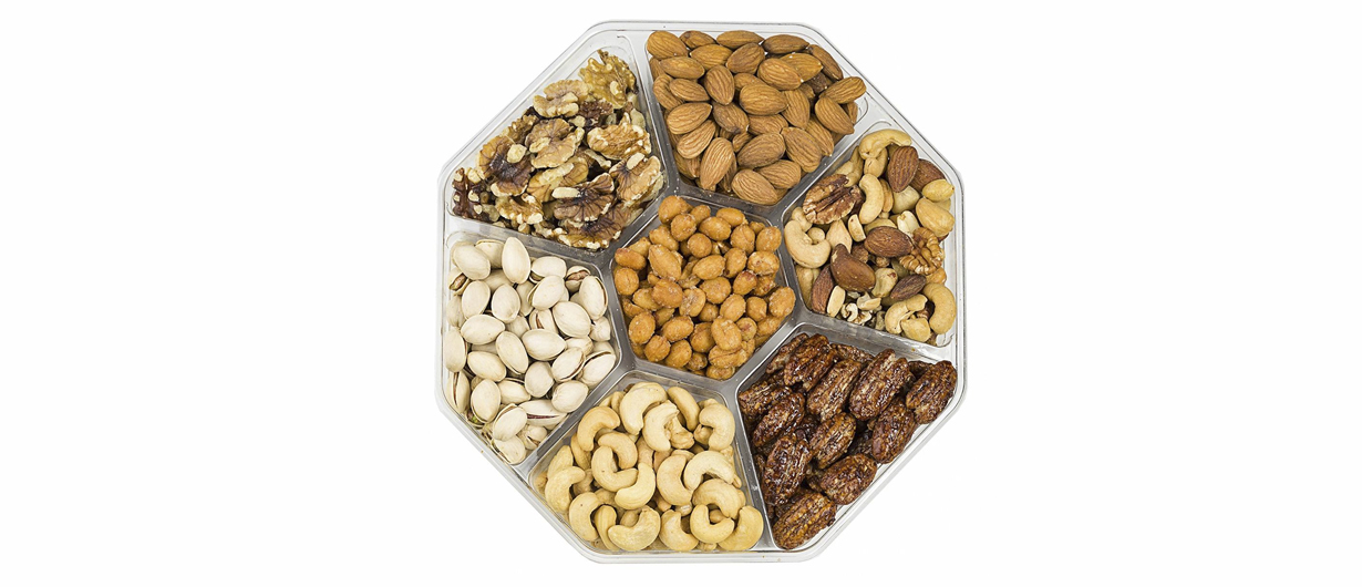 Otra opción deliciosa es armar una charola con diferentes frutos secos como: nueces, almendras, nuez de la india, orejones mixtos, almendrones, pasas con chocolates, dátiles, ciruela pasa, etc.